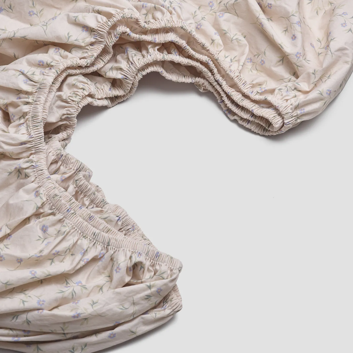 Meet our first floral cotton bedding collection, inspired by the romantic charm of English country houses. Working with The Design Library – the worlds largest collection of documentary fabrics, paintings, prints and patterns – we sourced an archival floral print and updated it for a modern setting, resulting in our new Spring Sprig bedding. Featuring a vintage-inspired printed floral motif and made from soft and breathable washed percale cotton, our Spring Sprig Printed Cotton Fitted Sheet is designed to be mixed and matched with colors from our washed cotton collection, pairing particularly well with Parchment, Buttermilk and Pear.