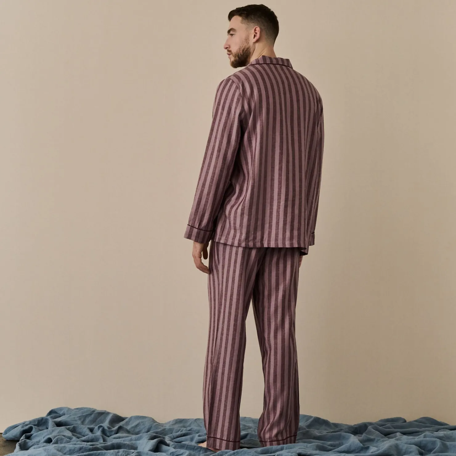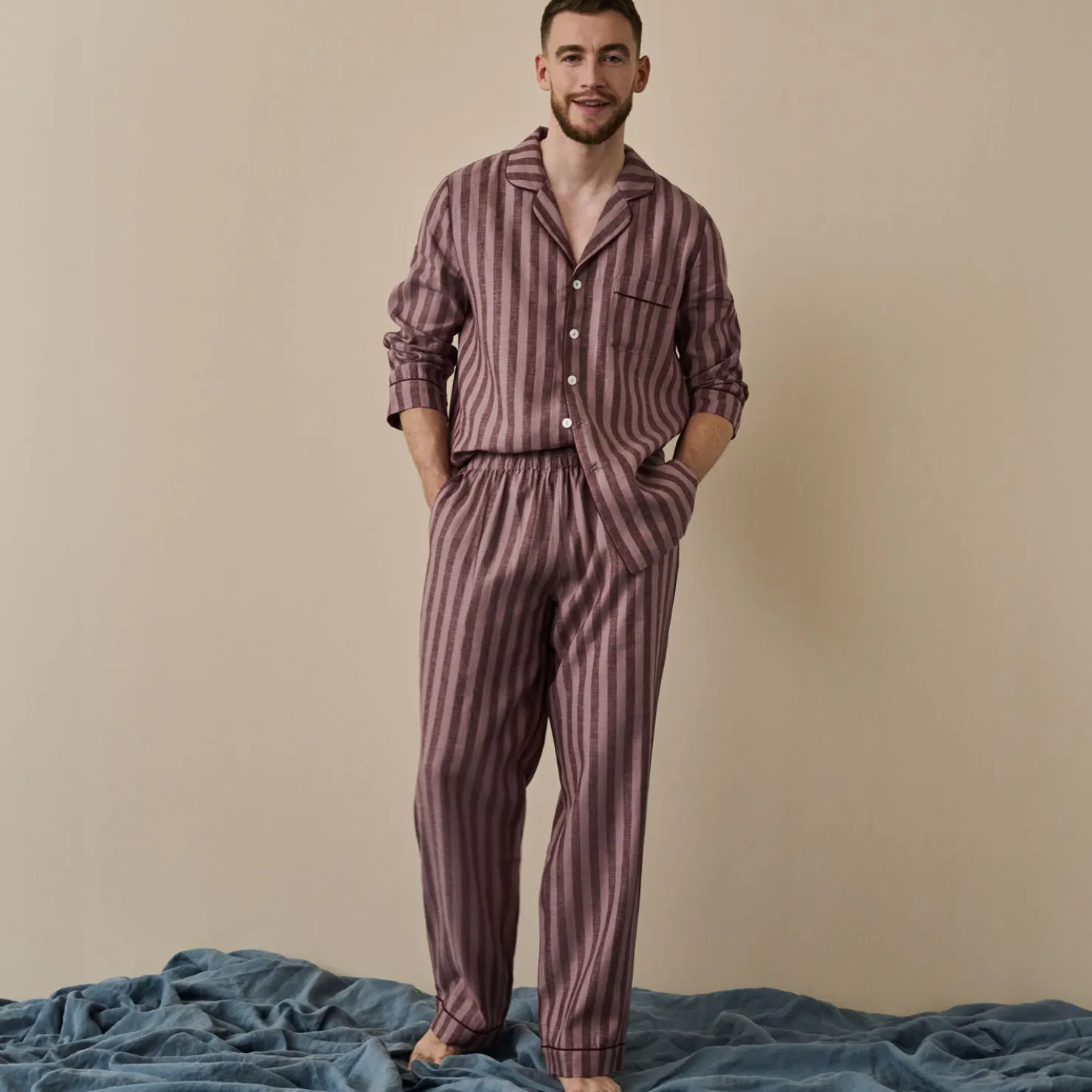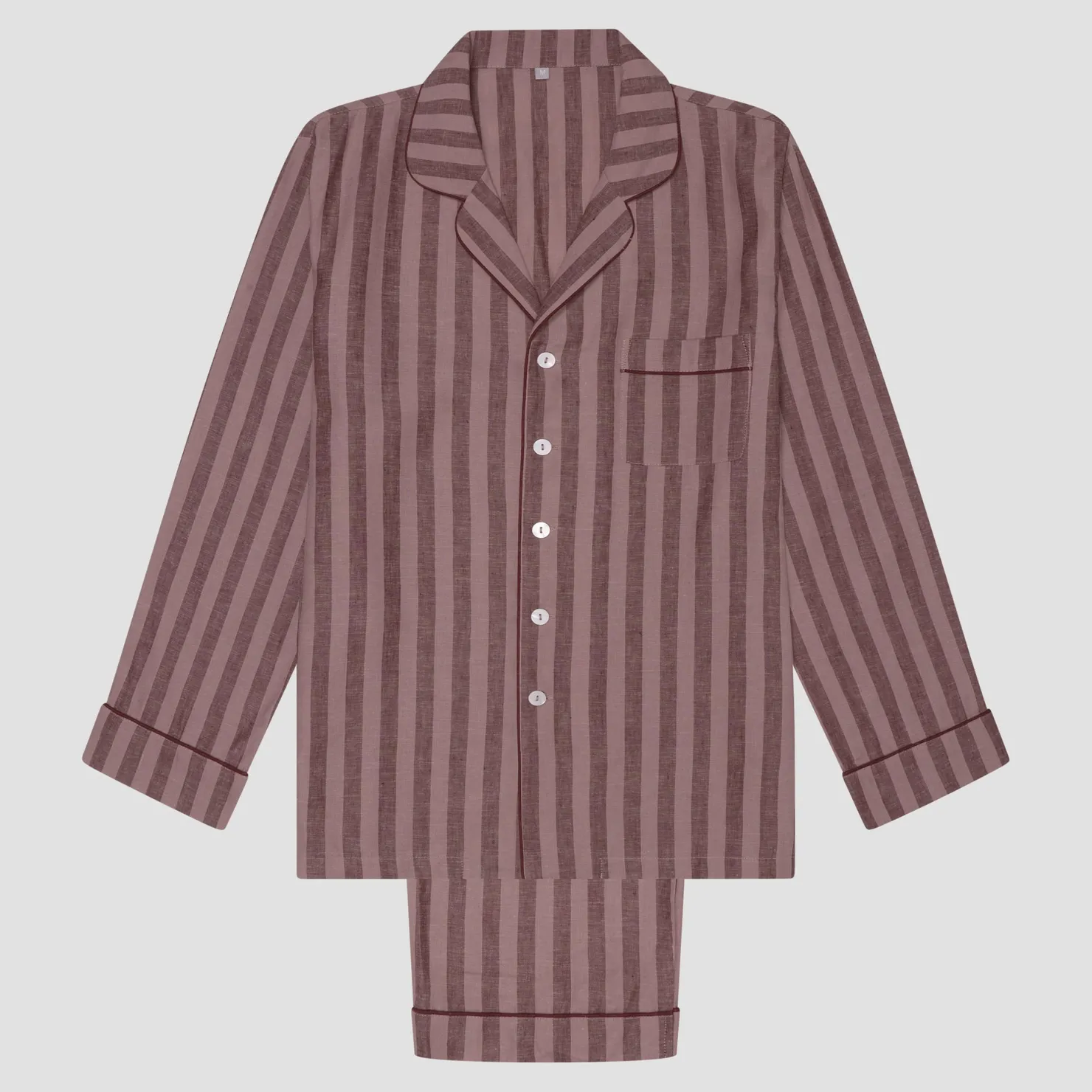 Linen Pajama Sets|Linen Pajamas>Piglet in Bed Men’s d Linen Pajama Set Port & Woodrose Stripe