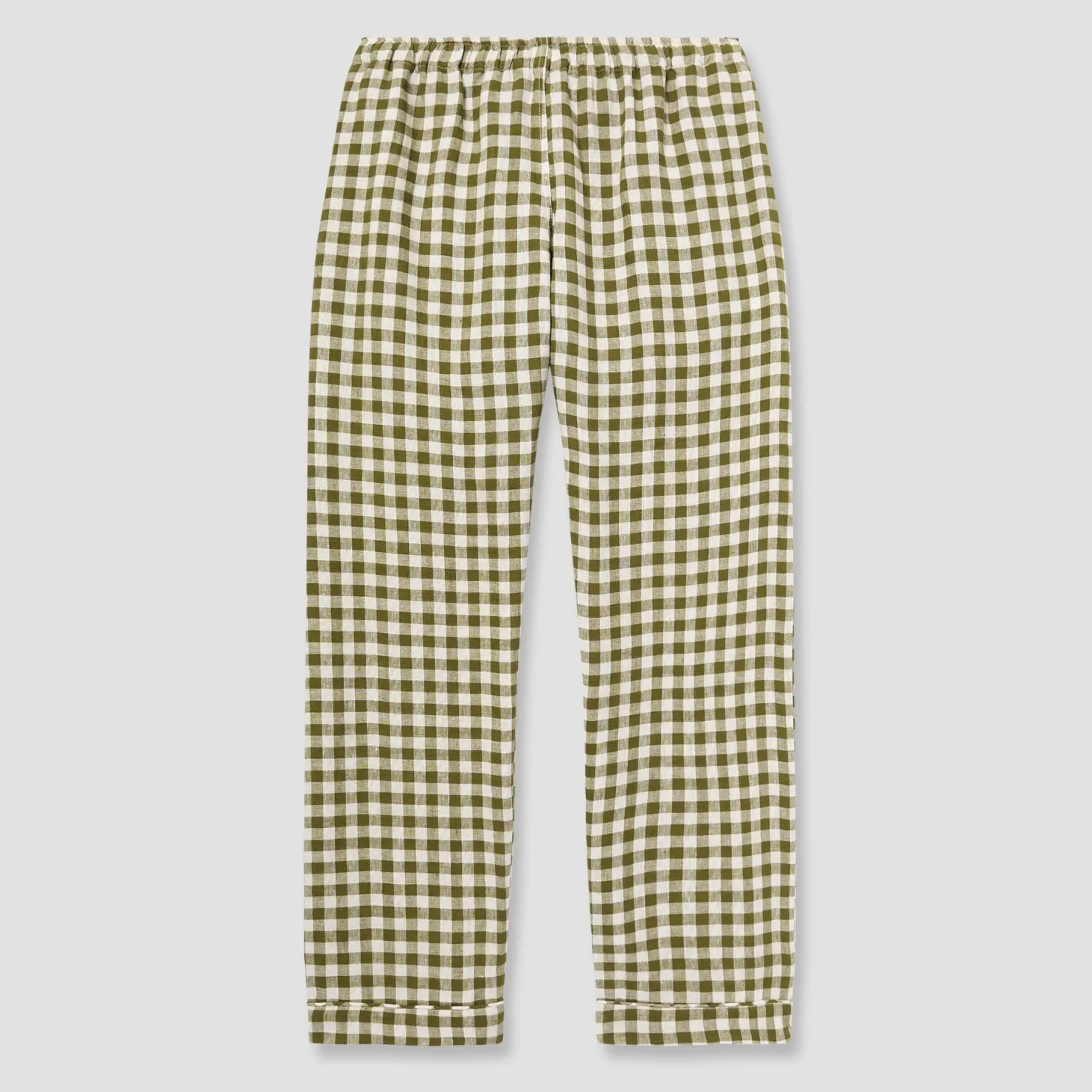 Made for relaxing at home and slow weekend mornings, our Men’s Botanical Green Gingham pajama pants are made from super soft 100% stonewashed linen. Linen keeps you cozy and warm in the winter and cool in the summer. Pair with our classic style pajama shirts for ultimate natural comfort. Our gingham sleepwear is an oversized, and more relaxed fit than our core range; we recommend sizing down if a more snug fit is desired.