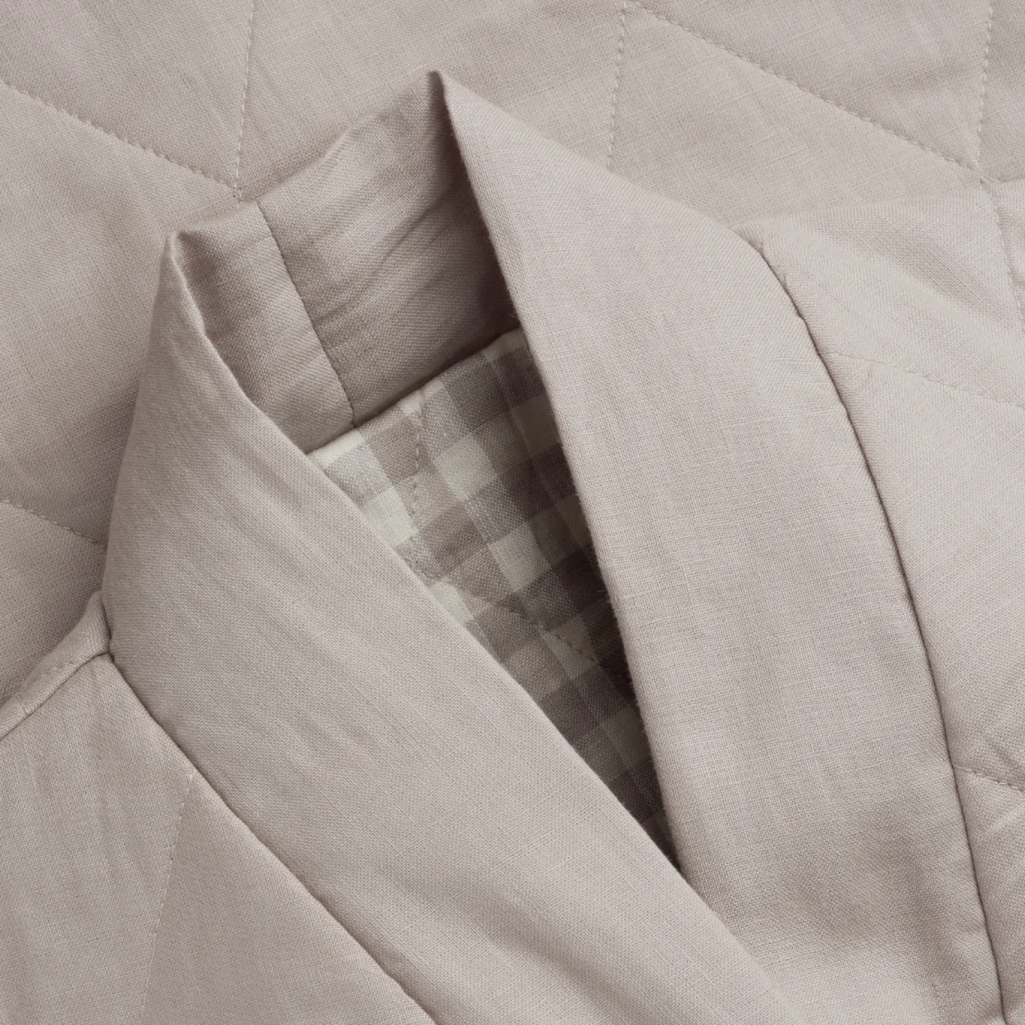 Our Mushroom Gingham Linen Housecoat is here to keep you cozy and warm, whether you’re making coffee on a chilly morning or snuggling up for the evening on the sofa. With its oversized style, reversible quilted design and handy pockets, this housecoat is sure to be your new loungewear staple.
