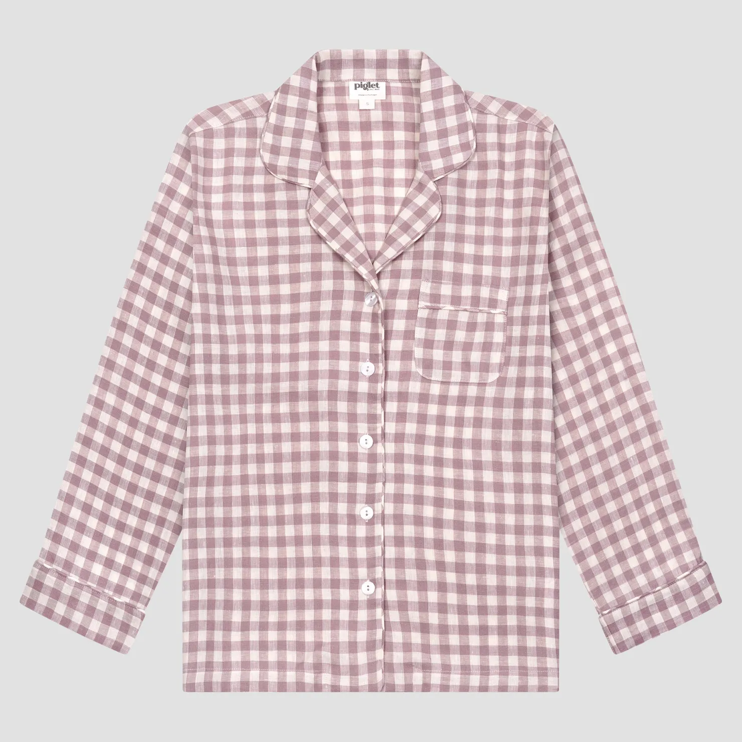 With a classic silhouette and relaxed fit, our Elderberry Gingham linen pajama shirt offers the perfect way to slumber in style. Made from super soft 100% European flax, these beautifully breathable pajamas will keep you comfortable no matter the season.