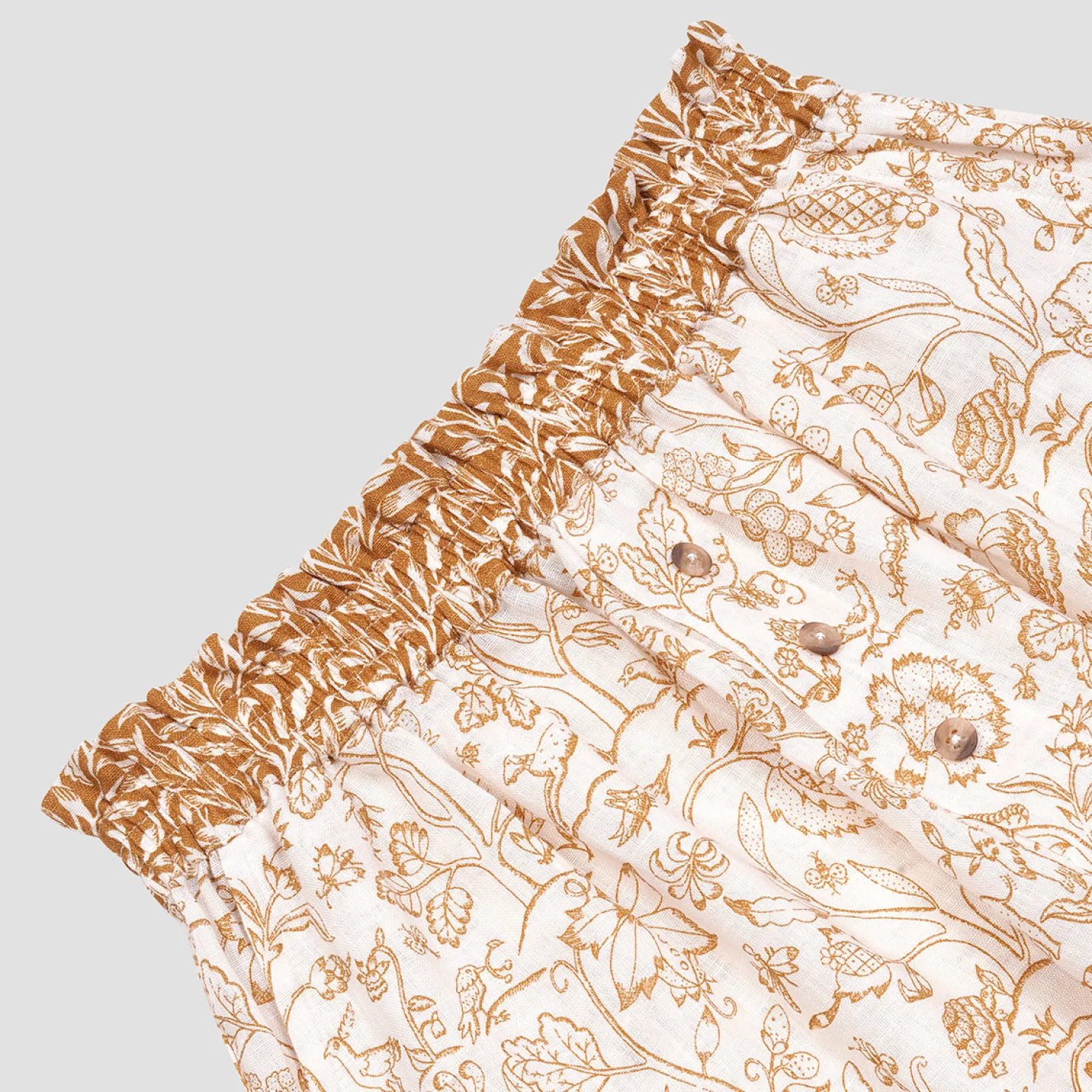 Designed in collaboration with Morris & Co., our Ernest White linen women’s pajama shorts set features the whimsical Middlemore pattern inspired by a quilt embroidery created by May Morris in 1889. Featuring delicately drawn flora and fauna, the classic motif pays homage to the brand’s rich heritage while faithfully reimagining it for modern living.