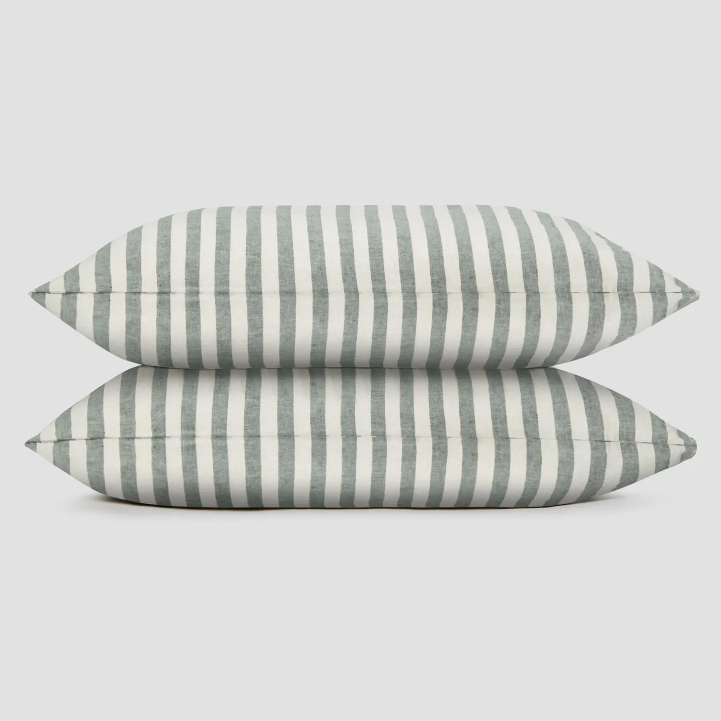 Nestle into nostalgia with our bold deck-chair-inspired Fern Green Pembroke Stripe linen blend pillowcases. Made from only the highest-quality fibers, the breathable fabric combines the effortless look of linen with the softness of cotton. All our pillowcases have envelope closures, making sure your pillow stays out of sight.