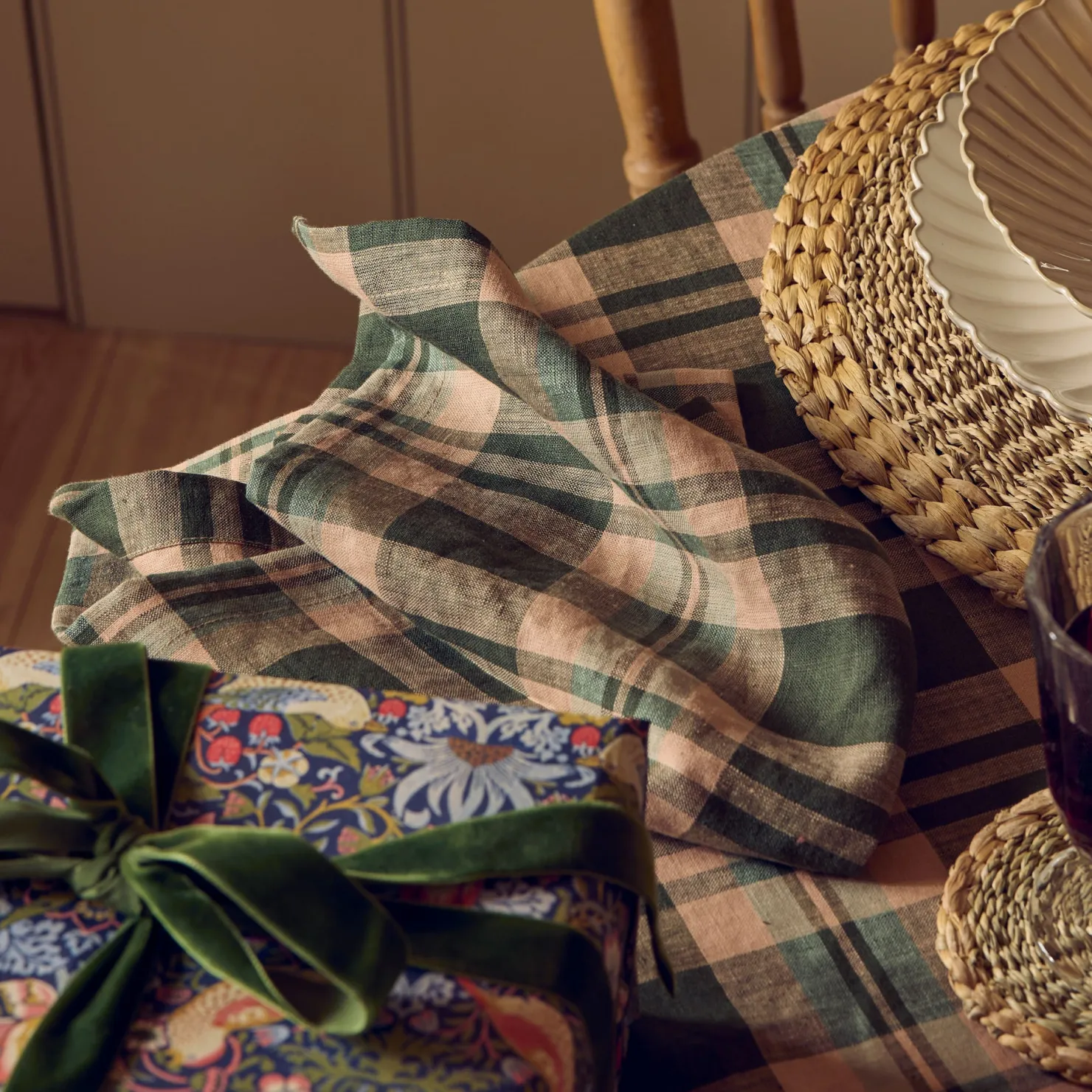 Our Fern Green Dallington Plaid linen napkins are here to bring warmth and coziness to the dinner table, whether for everyday mealtimes or special occasions. The heritage-inspired design is wonderfully nostalgic, and the comforting colorways give a rustic, cabincore feel. Complete your dining table look with the rest of our linen tableware range, including tablecloths, table runners and placemats. The Fern Green Dallington Check linen napkins come in a set of 4 and measure 45 x 45cm.