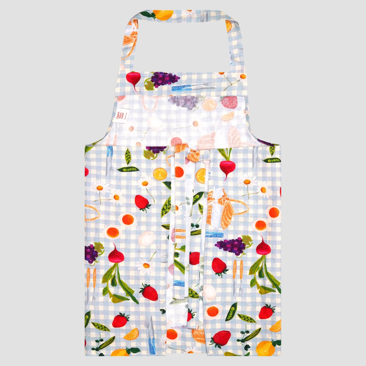 Pack up your picnic basket and head to the great outdoors with this playful collaboration with slow-fashion brand Lisa Says Gah. Featuring an all-over print of hand-painted motifs on our signature gingham pattern, our Picnic Alfresco linen apron is perfect for cooking, gardening or doing odd jobs around the house. The elegant design is inspired by traditional Japanese aprons and features wide shoulder straps, a relaxed cross back, and a deep twin-sectioned front pocket.
