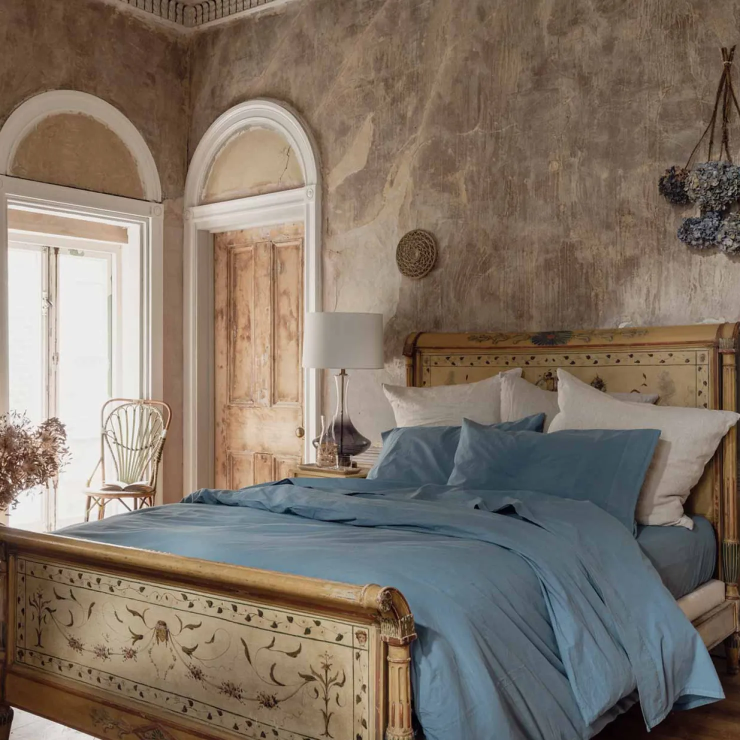 Our 100% cotton percale flat sheets are washed to ensure a super soft experience from the minute you get them home. The percale weave allows for a relaxed, matte finish while the loose nature of the weave makes them highly breathable and airy. Perfect for lovers on no-fuss, high quality cotton bedding. Our flat sheets can be tucked into your mattress or used as an extra layer under your duvet cover. Pictured here in Cove Blue, a gentle lemon sorbet-inspired shade, designed to complement the rest of our existing washed cotton bedding collection, or to simply look great on its own.