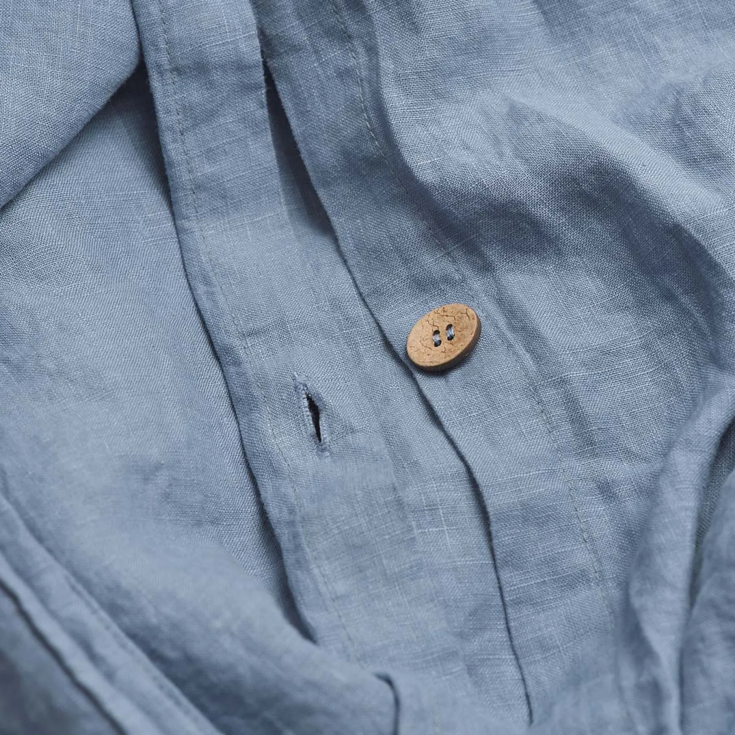 Our Dusk Blue linen duvet cover will add a sense of calm to your bedroom, evoking a feeling of restfulness. Woven from European flax, our linen is soft and breathable with a beautiful lived-in look. All our duvet covers feature coconut shell button fastenings and handy inside corner ties to stop your duvet from slipping.