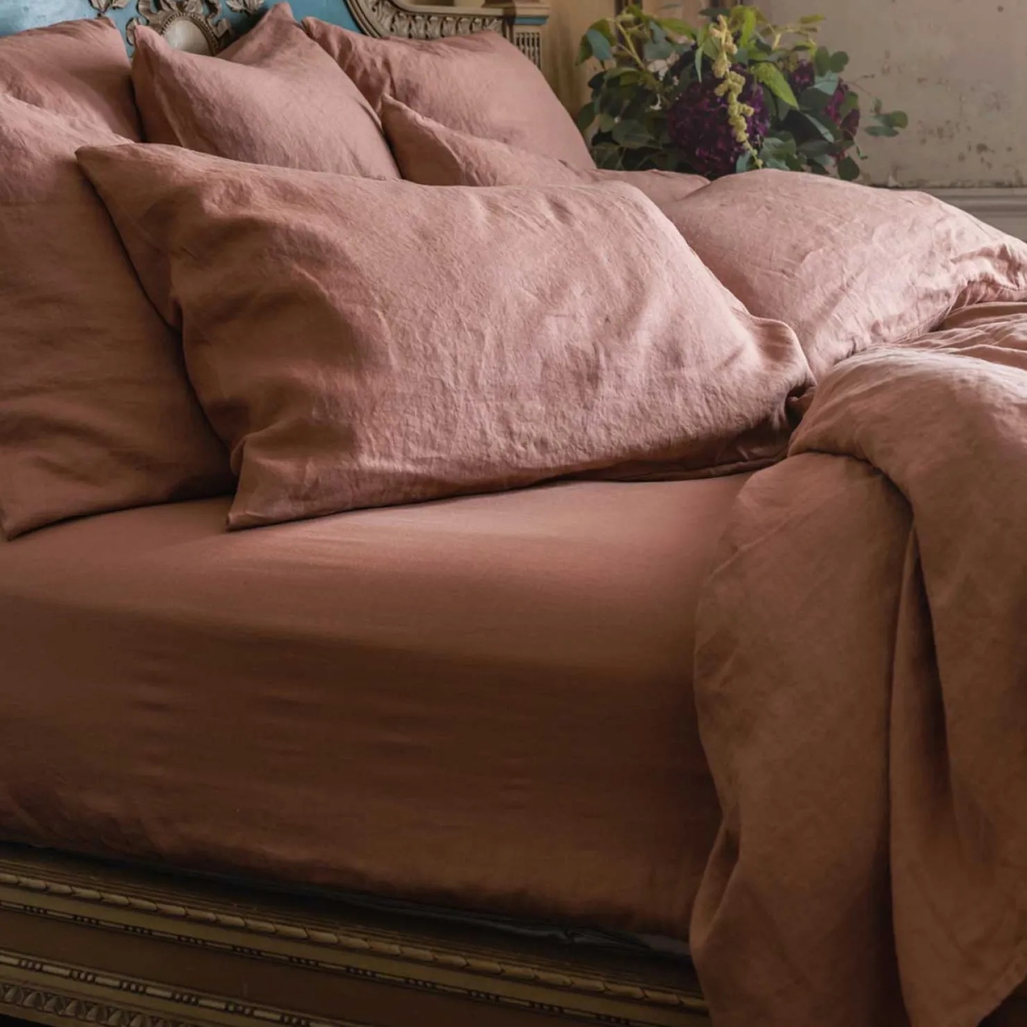 A vintage-inspired dusky pink, our Warm Clay linen fitted sheet is perfect for creating a relaxing retreat. Made from high-quality European linen, our linen fitted sheets are both soft and breathable, ensuring a comfortable night’s sleep every time. Our fitted sheets have elasticated edges all the way around and fit mattresses up to 40cm deep.