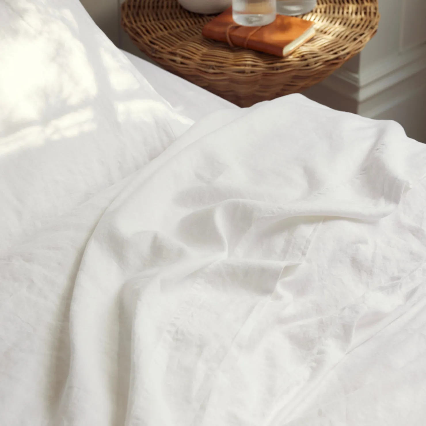 Our White linen blend flat sheet is a classic choice for lovers of high-quality, natural basics. Made from only the highest-quality fibers, the breathable fabric combines the effortless look of linen with the softness of cotton. Layer in the colder months or use as a lightweight cover on warmer summer nights.