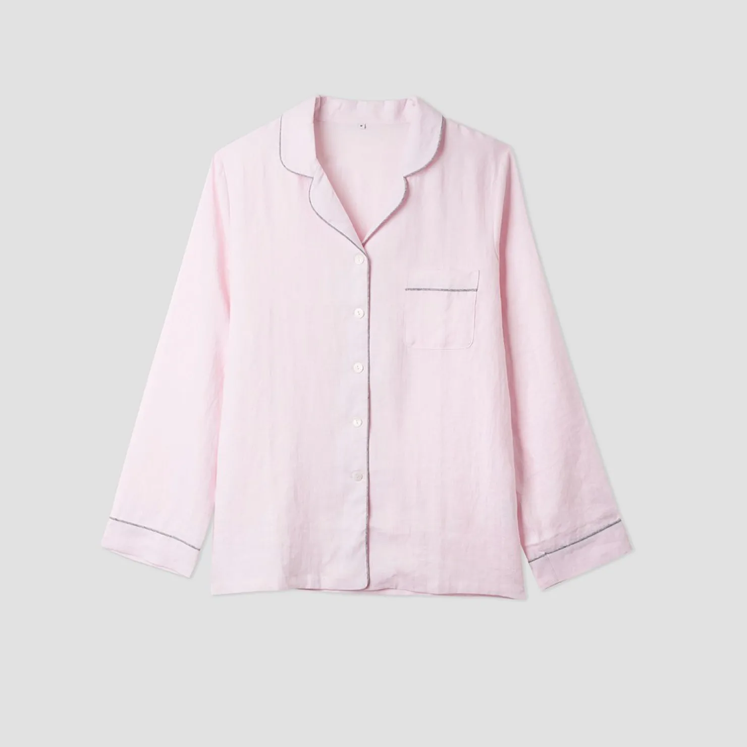 Made for those who like their sleepwear to be timeless yet comfortable, our Blush Pink pajama shirt is made from super soft 100% stonewashed linen. Linen keeps you cozy and warm in the winter and cool in the summer. Our linen pajama shirt can be paired with our pajama pants to complete the look.