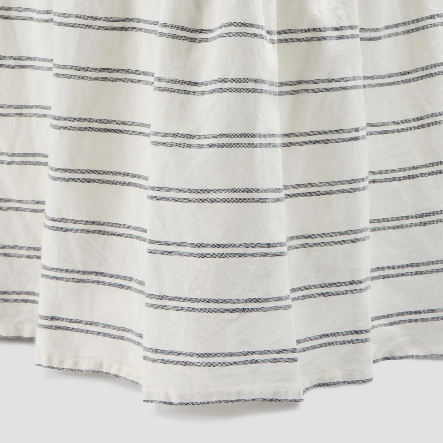 Offering a modern take on a traditional design, our Kemptown Stripe linen blend bed skirt has a truly timeless appeal. Featuring a simple yarn-dyed stripe, this classic gathered skirt drapes beautifully with its soft frills. Our bed skirts have a 15-inch drop from the base to the floor and come in four sizes for twin, full, queen and king beds.