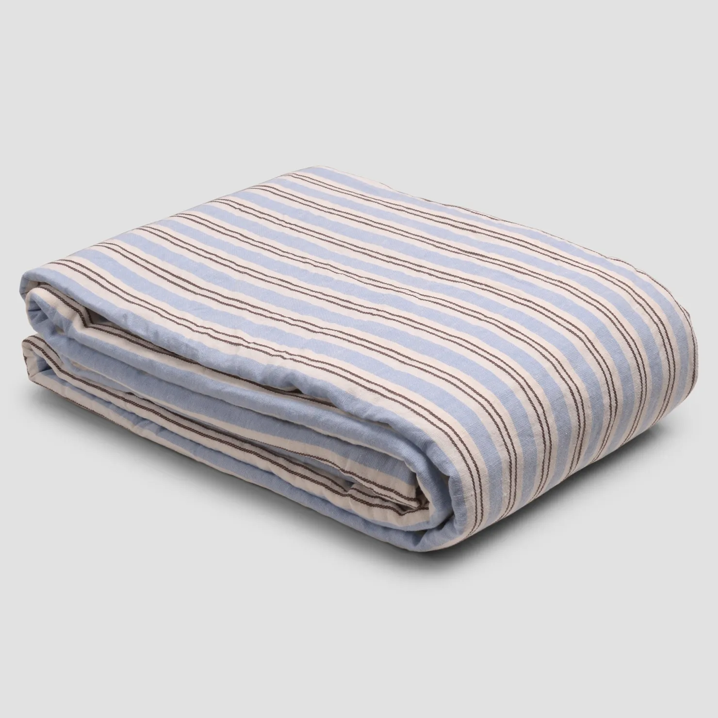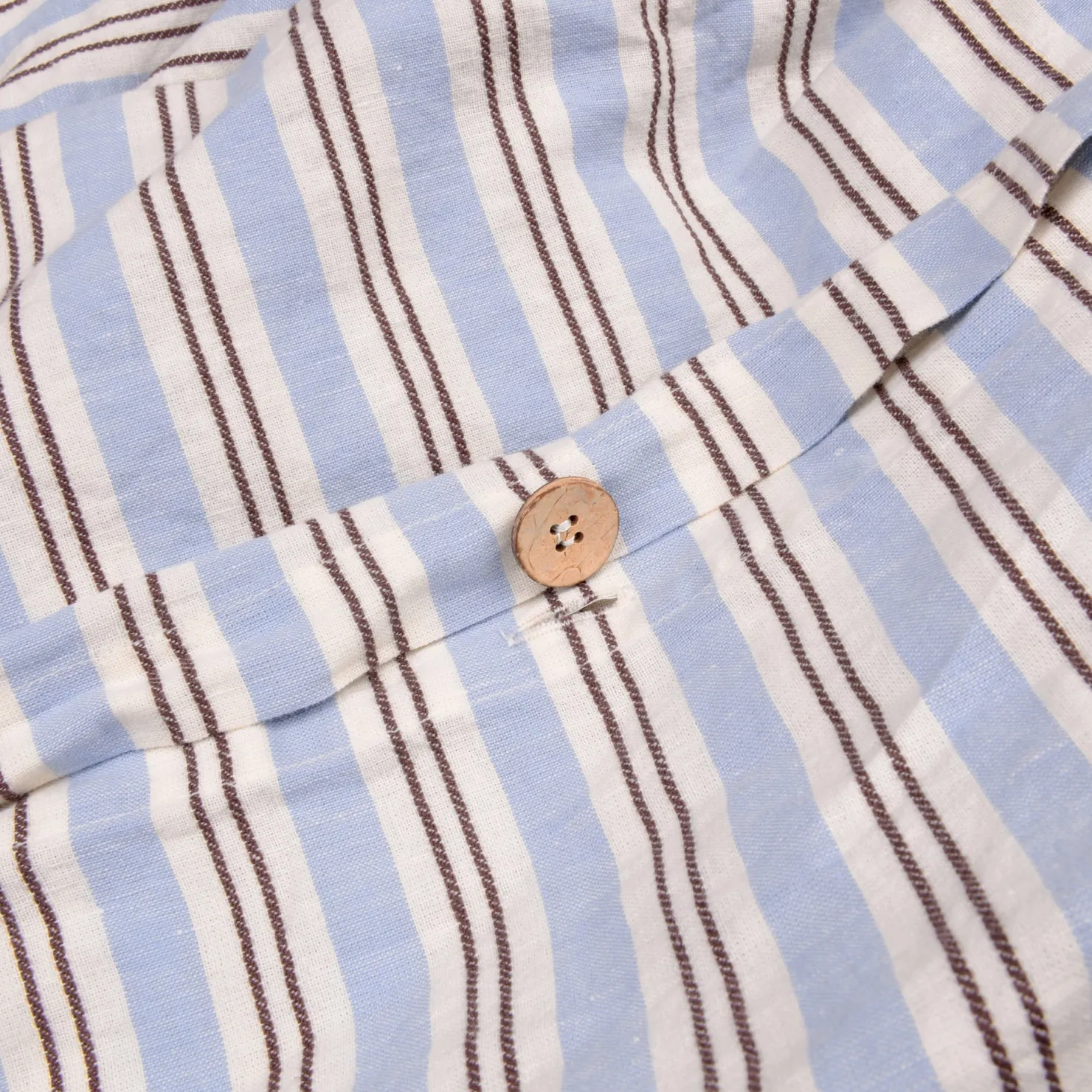 Our heritage-inspired Bluebell Somerley stripe duvet cover features a classic warm blue stripe interspersed with a patterned dobby weave for extra dimension. Made from a blend of European linen and cotton, this wonderfully breathable, comfortable and durable fabric offers the best of both worlds. This duvet cover features coconut shell button fastenings and handy inside corner ties to stop your duvet from slipping.
